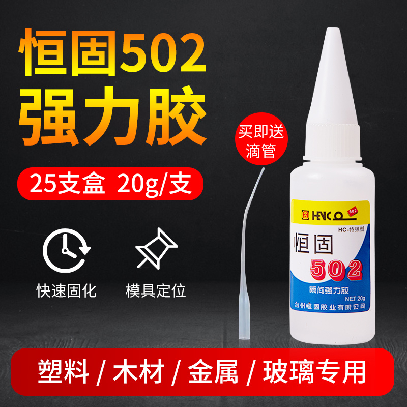 20克大瓶恒固瞬间强力胶特强型正品502胶水五金模具胶木用快干胶 - 喜洋洋胶行