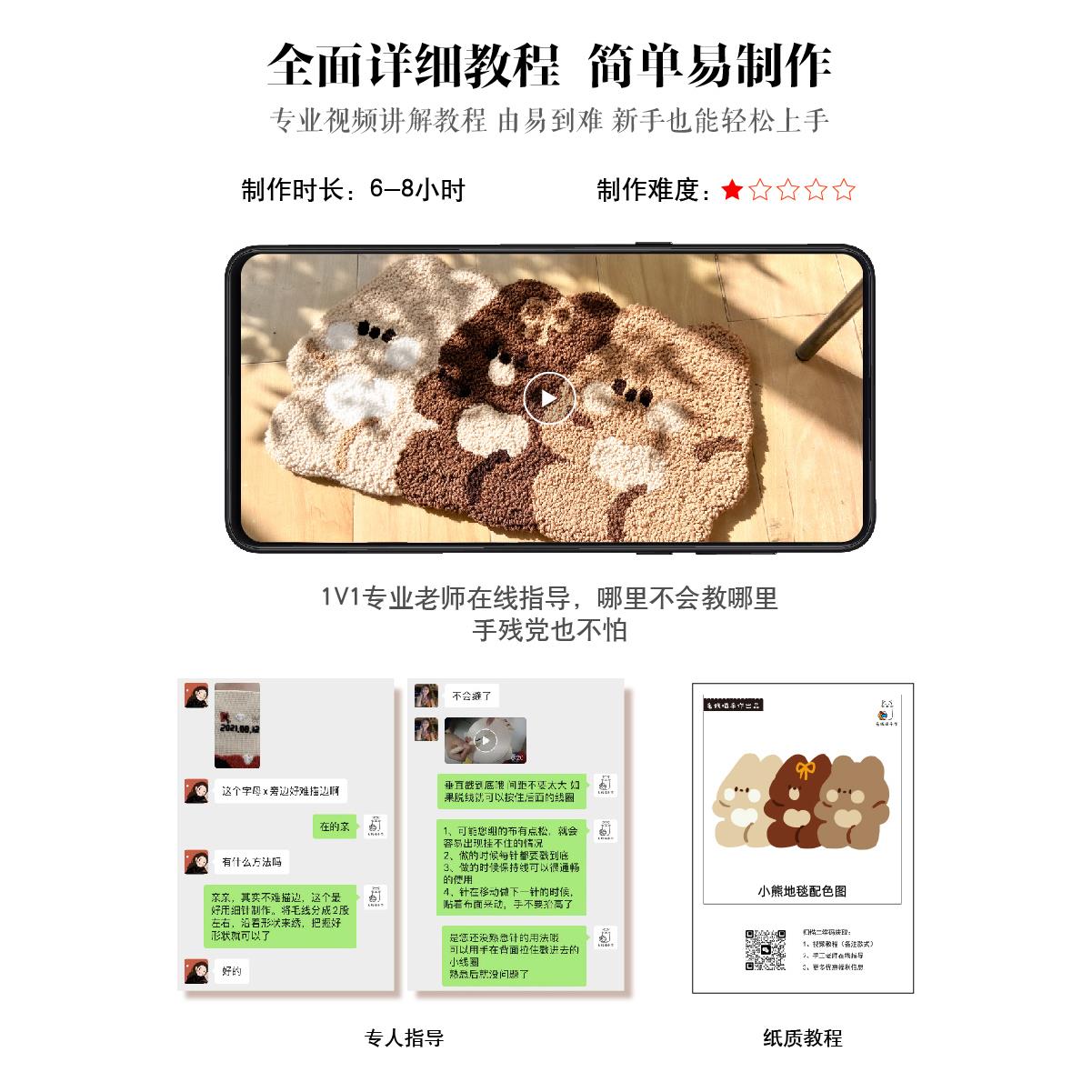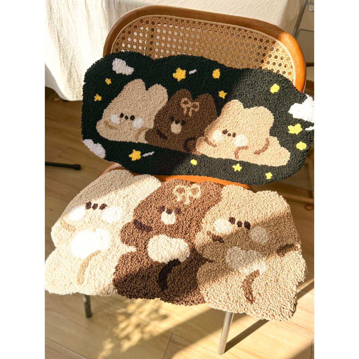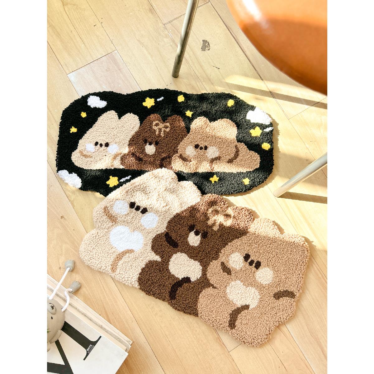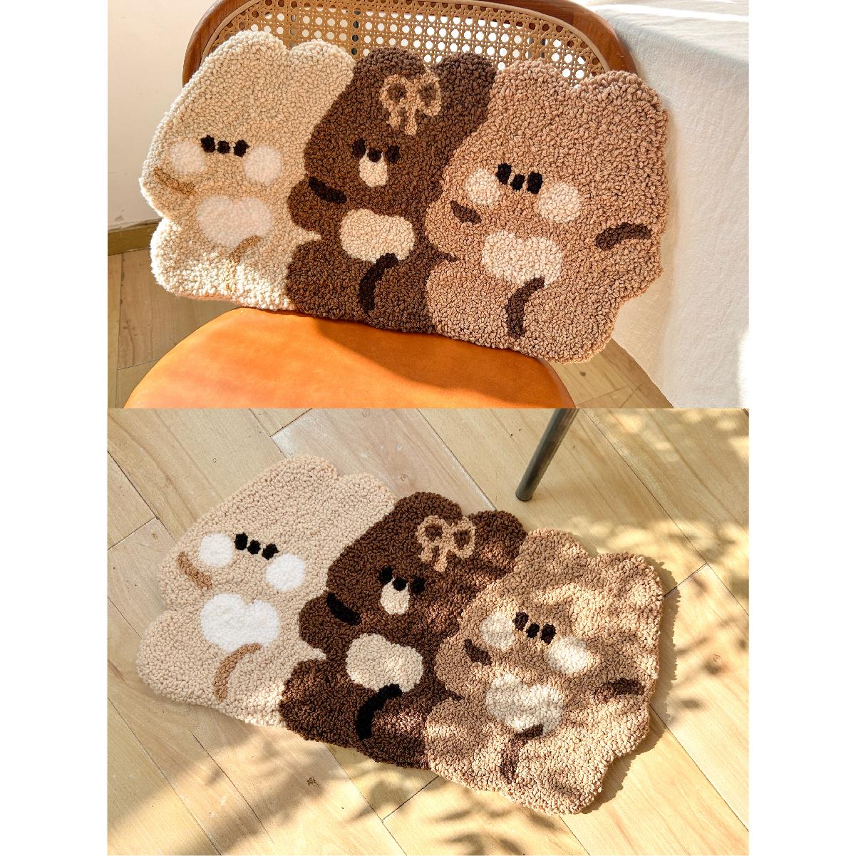 戳绣卡通熊地毯手工DIY材料包装简约风格卧室床头毯防滑耐磨