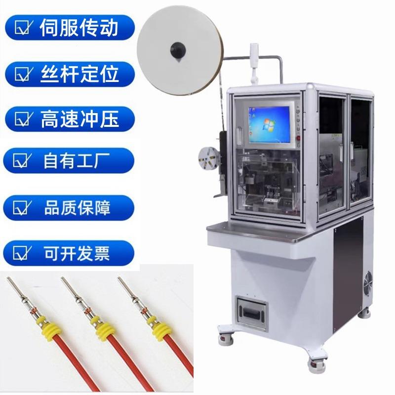 半自动防水塞剥皮打端机伺服电机导轨丝杆定位穿水栓剥皮压接