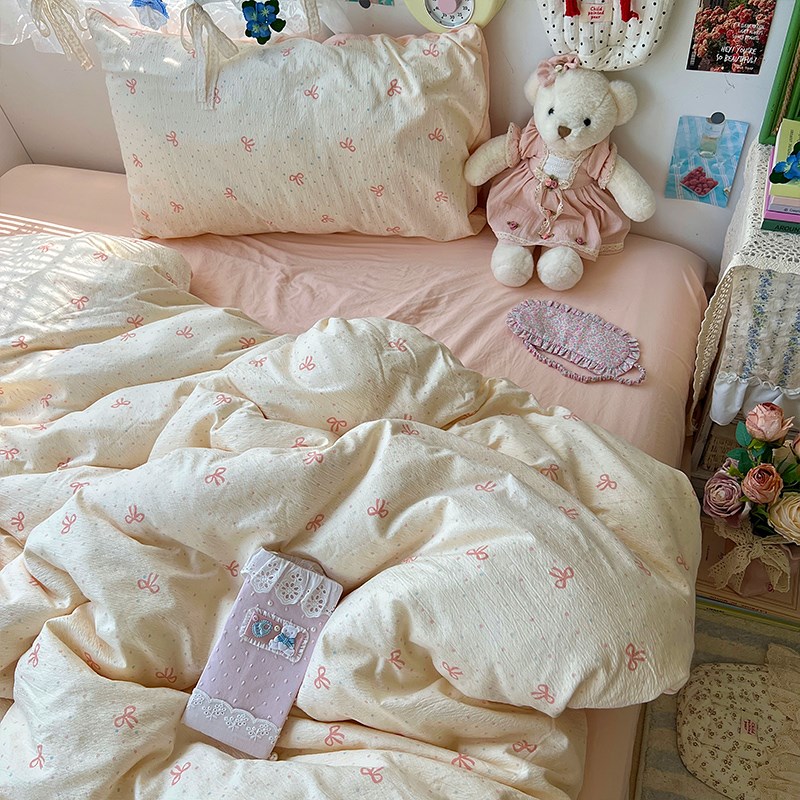 A类少女心蝴蝶结床上四件w套全棉床单被套被罩学生宿舍三件套4 - 长用设计馆03
