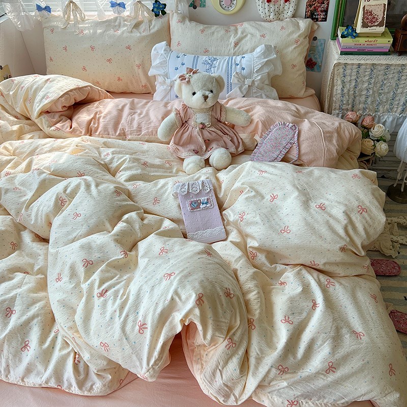 A类少女心蝴蝶结床上四件w套全棉床单被套被罩学生宿舍三件套4