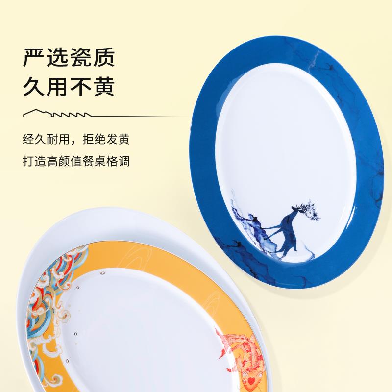 陶溪川景德镇陶瓷大尺寸中式鱼盘家用蒸鱼盘子高级感椭圆形餐具 - 童话之在梦里企业店