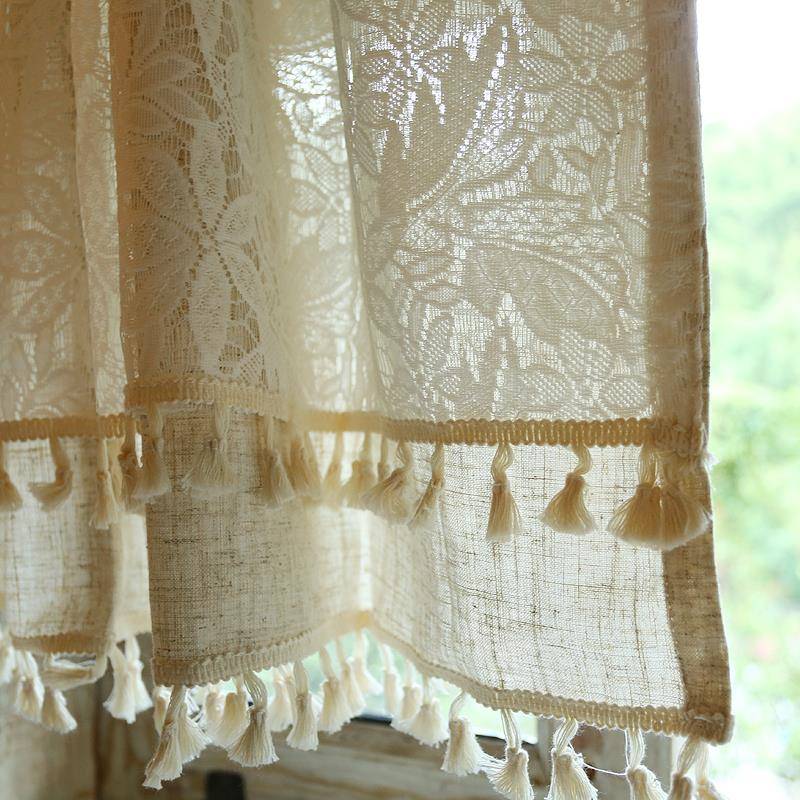 鸢尾乡旅棉麻双层蕾丝清新遮光半帘门帘窗帘窗纱定制卧室客厅厨房 - 翊鱼雷嘉专卖店