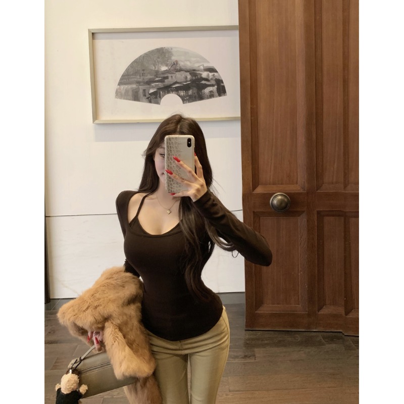 您的位置:他他商城  >  女装  >  性感辣妹纯欲风甜酷掐腰独特设计感显瘦时尚修身方领挂脖气质上衣