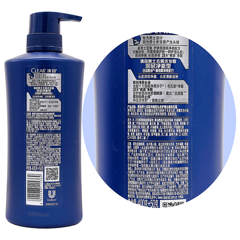 清扬男士深层净澈型去屑洗发露400克植物草本成人男士洗头洗发用 - 宏锦旺医疗器械专营店