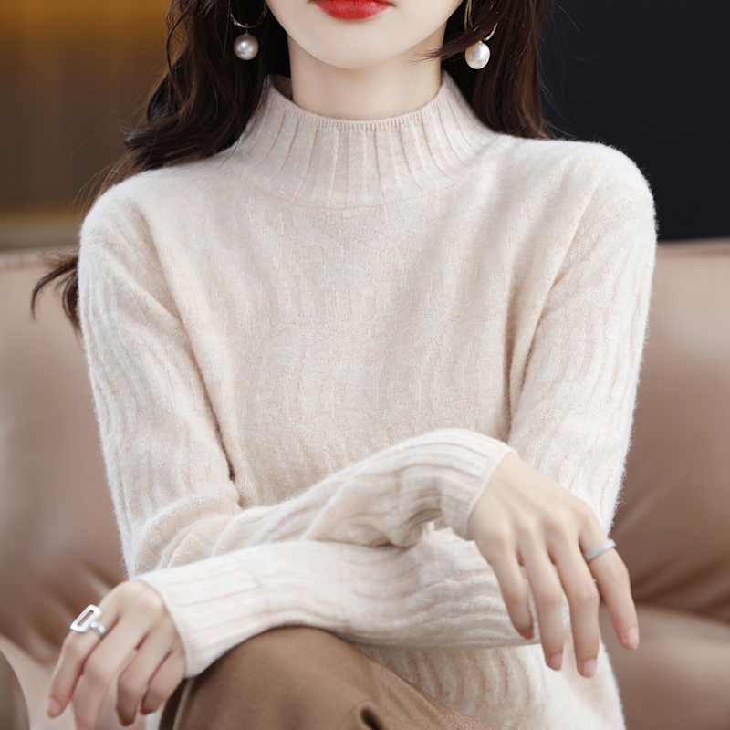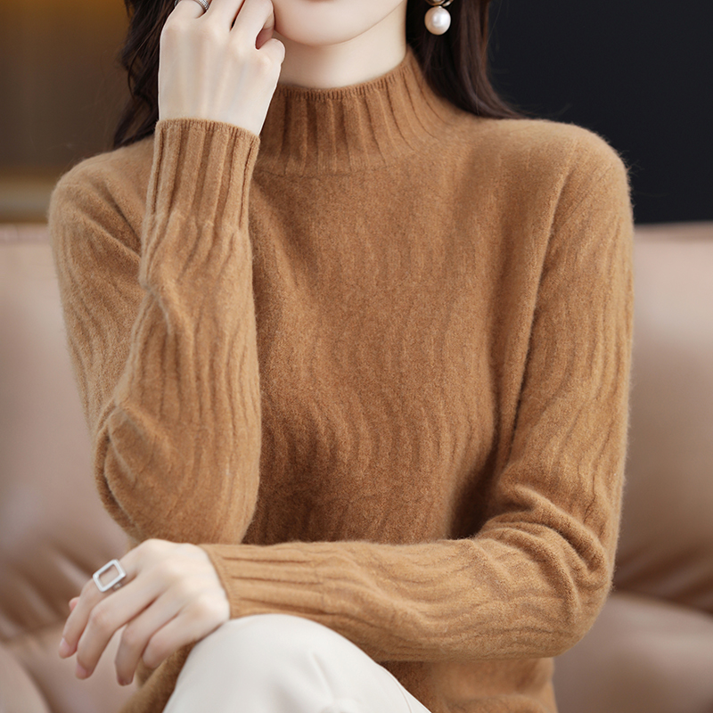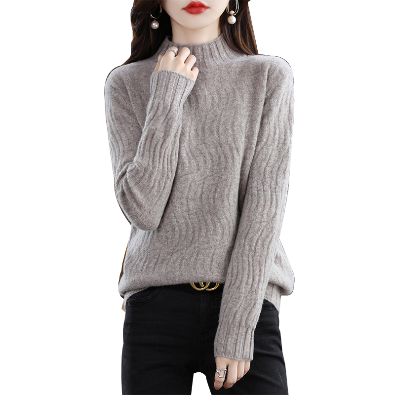25秋冬新款半高领100%纯羊毛衫女波纹宽松套头毛衣羊绒打底针织衫 - 梦茜韵高端羊绒衫工厂直销店