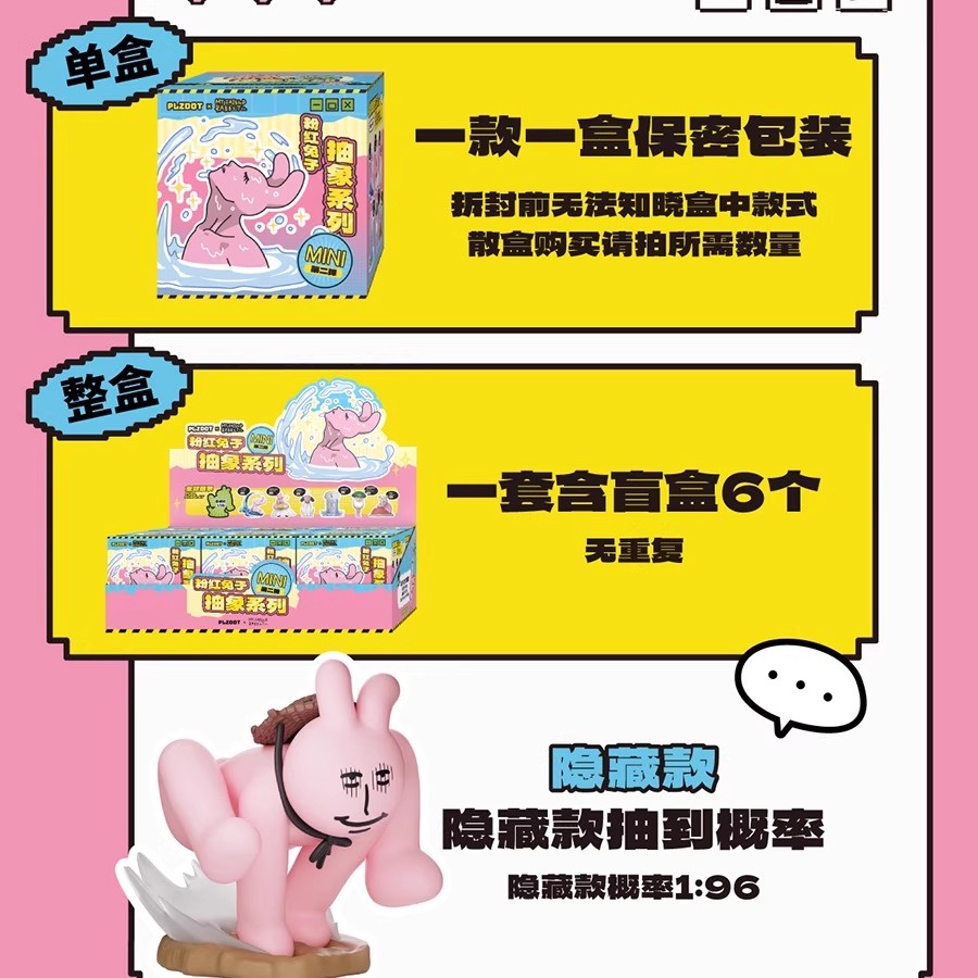 您的位置:他他商城  >   >  正版PLZDOT粉红兔子抽象系列盲盒手办迷你mini2代第二弹摆件周边