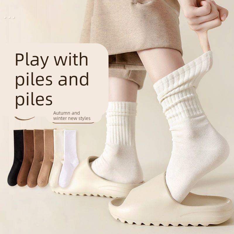 防臭袜子春秋袜子女士i百搭日系纯色秋冬中长筒运动条纹堆堆中筒 - d[s538186265]