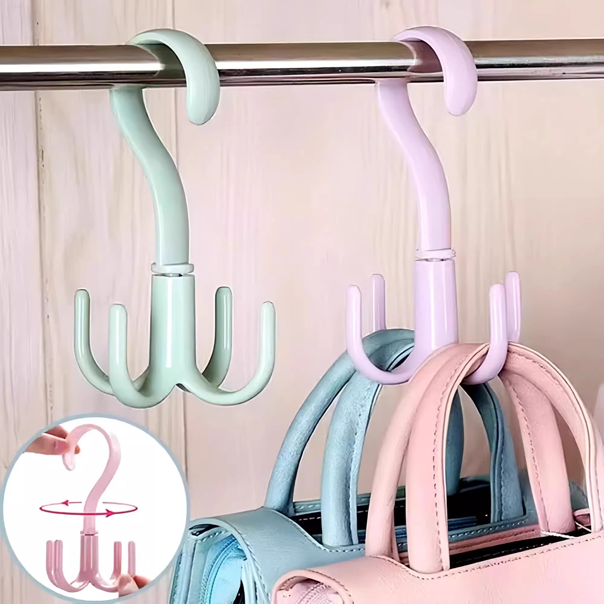 您的位置:他他商城  >   >  可旋转四爪挂钩挂包架多功能包包衣帽挂钩晒鞋架免打孔收纳