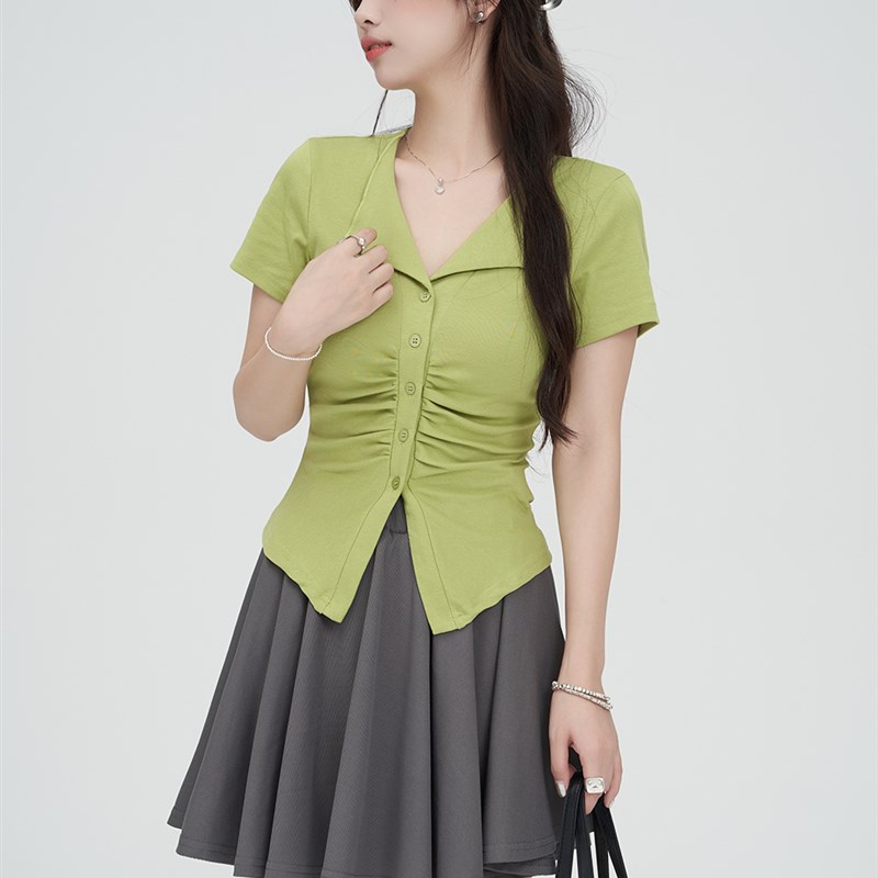 速发计码装202夏日多巴胺穿搭设大感小众遮恤t肉上衣 - 指定商贸