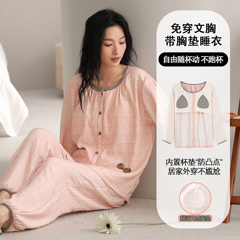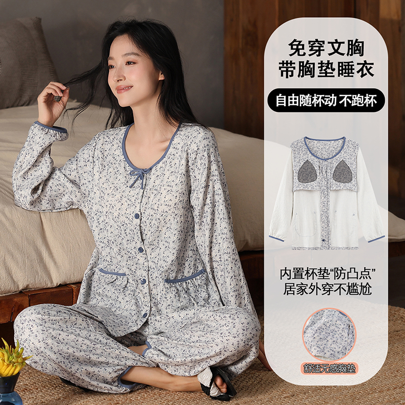 云朵棉春秋睡衣女长袖开衫两件套简约时尚宽松高级感秋冬季家居服