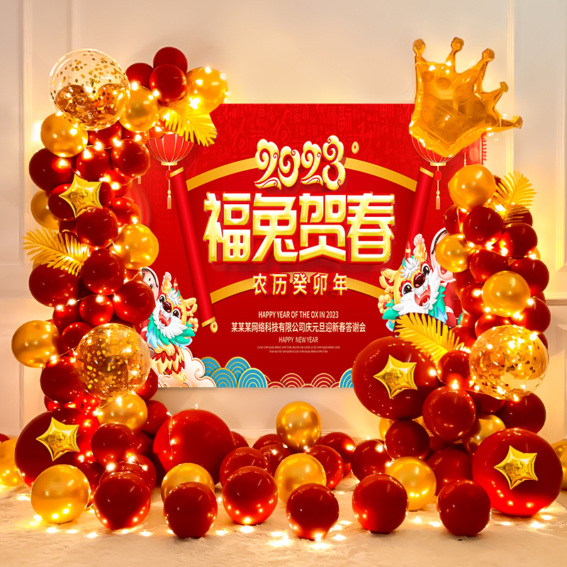 新年学校幼儿园教室背景墙装饰公司年会摆件过春节兔美陈海报布置
