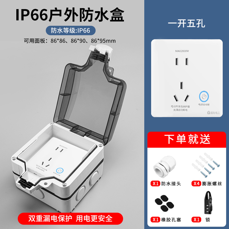 室户外防暴雨IP66插座防水罩电动车充电自动断电保护器智能防过充 - 国际电工旗舰店