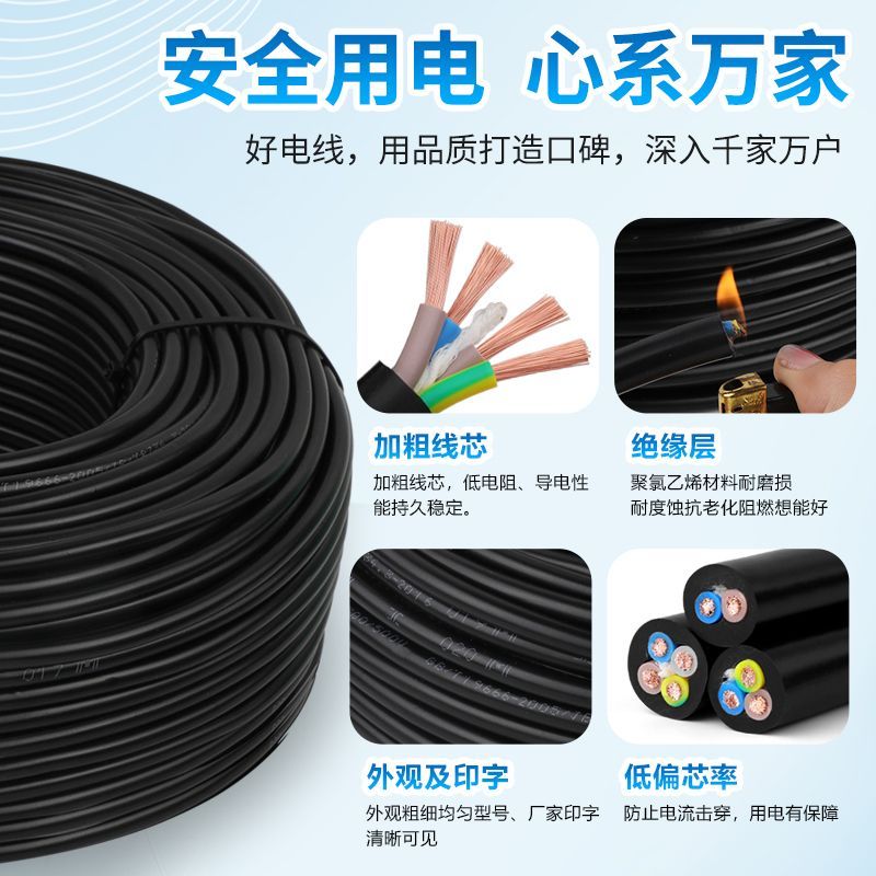 您的位置:他他商城  >  居家  >  国标三相电缆线电线2芯3芯四芯1.5/2.5/4/6/10平方防水耐磨护套线