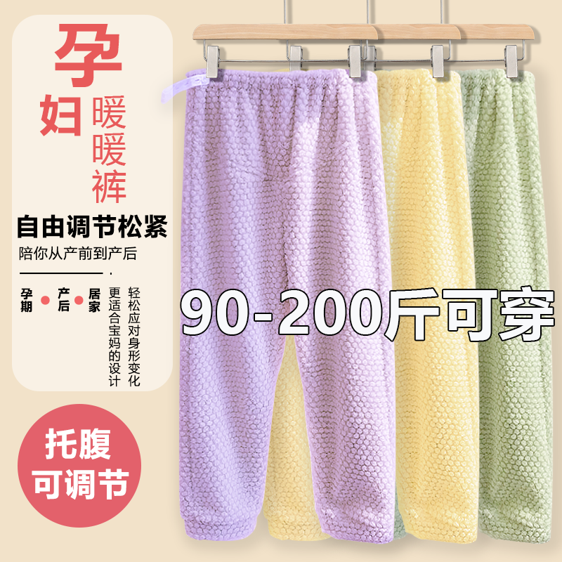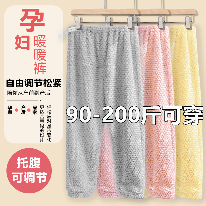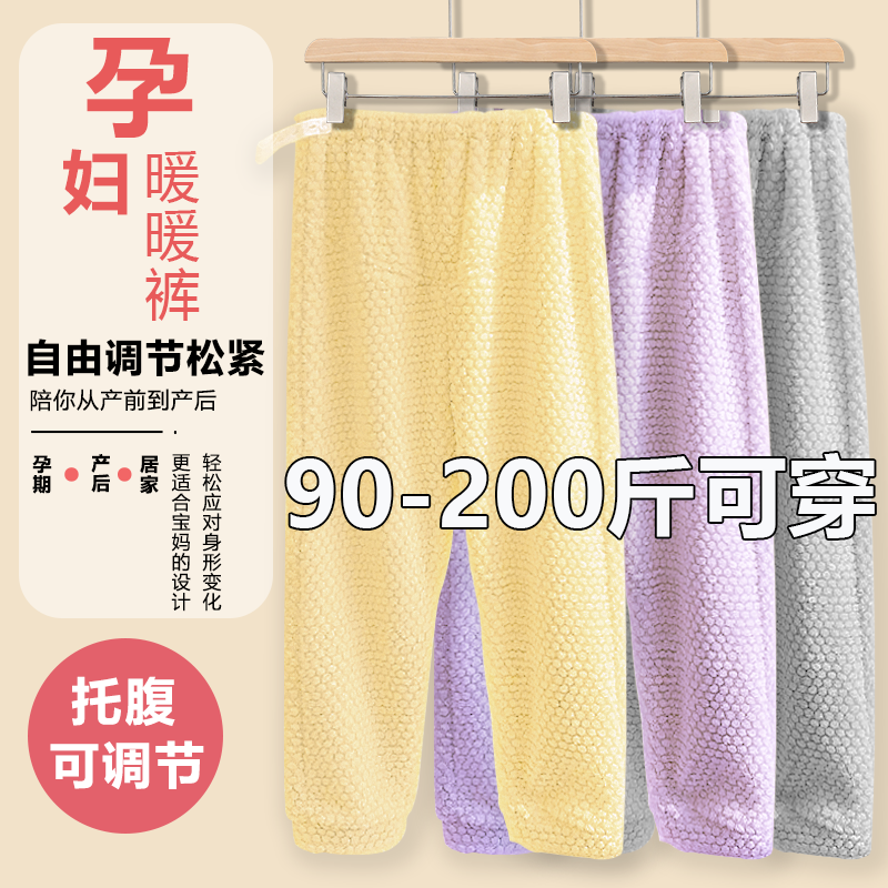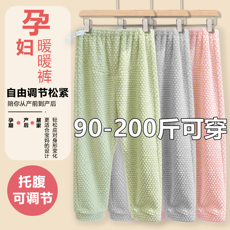 秋冬季大码加绒加厚珊瑚绒孕妇托腹家居裤2025新款怀孕可外穿睡裤