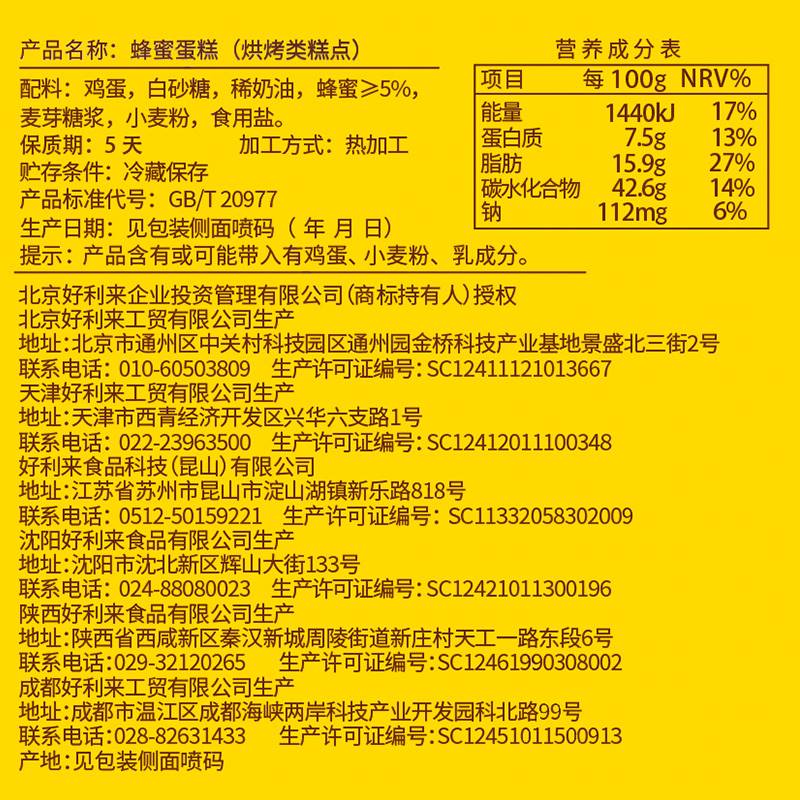 好利来蜂蜜蛋糕休闲营养鸡蛋糕早餐食品点心零食甜品糕点甜点