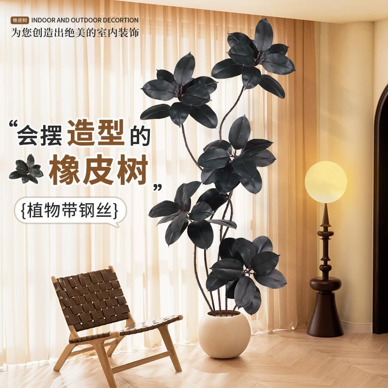 仿真绿植橡皮树落地摆o件盆栽客厅高端装饰室内沙发旁黑金刚假植 - tb564568469071