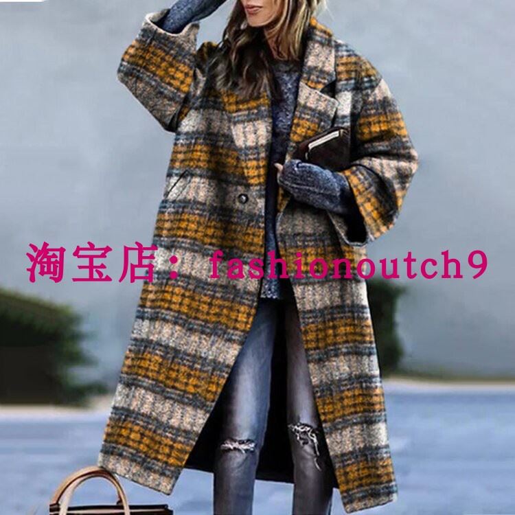 您的位置:他他商城  >   >  2023 color blocking plaid printed woolen coat 印花呢子大衣