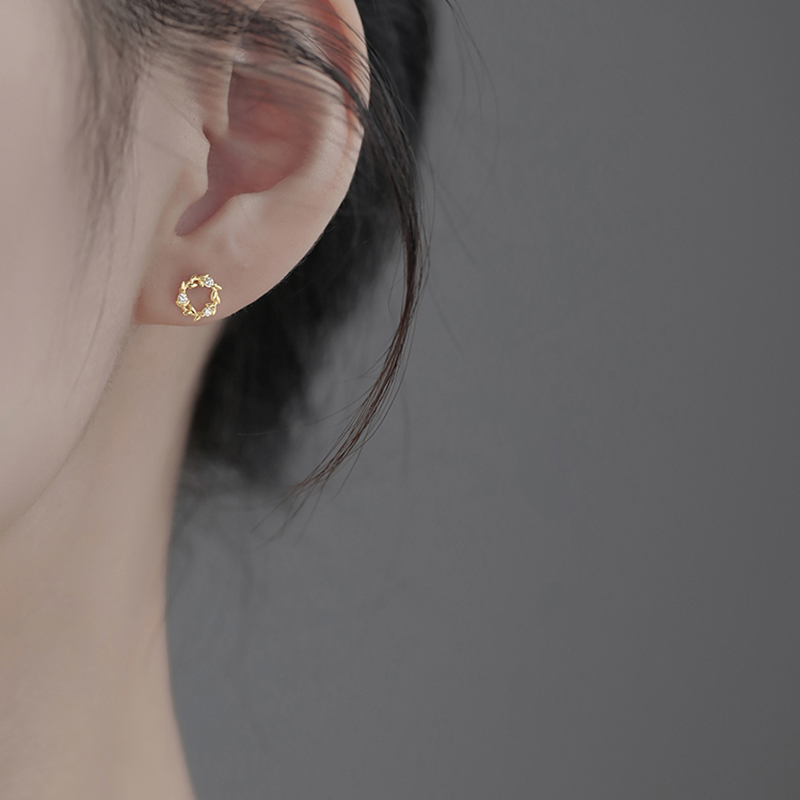 S999纯银针花环耳钉2025年新款潮超闪水钻养耳洞耳环气质轻奢耳饰 - 伊灿饰品旗舰店