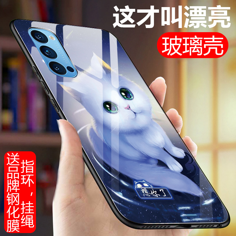 opporeno4手机壳reno4玻璃壳pr0硅胶软边保护套reno4pro全包防摔4por磨砂硬壳0pp0r男女款ren04情侣网红外壳 - 思睿数码专营店