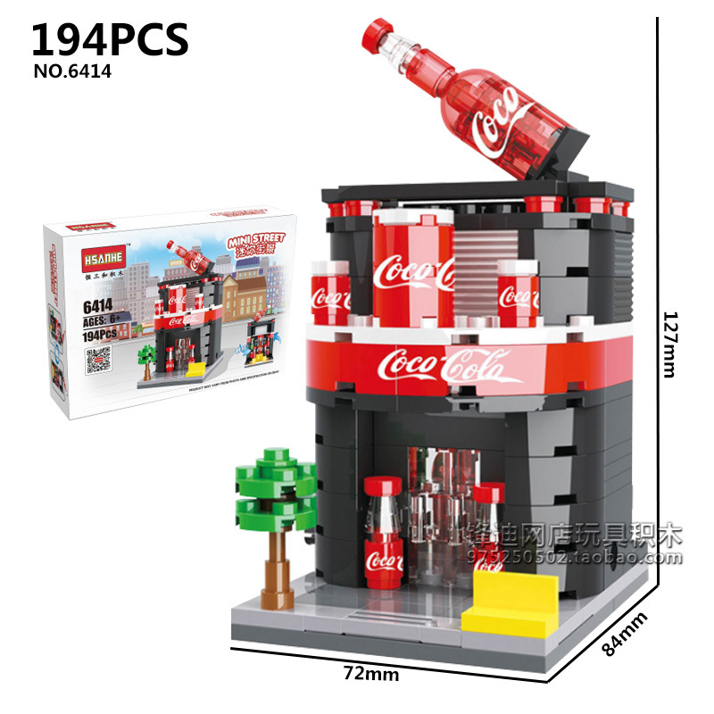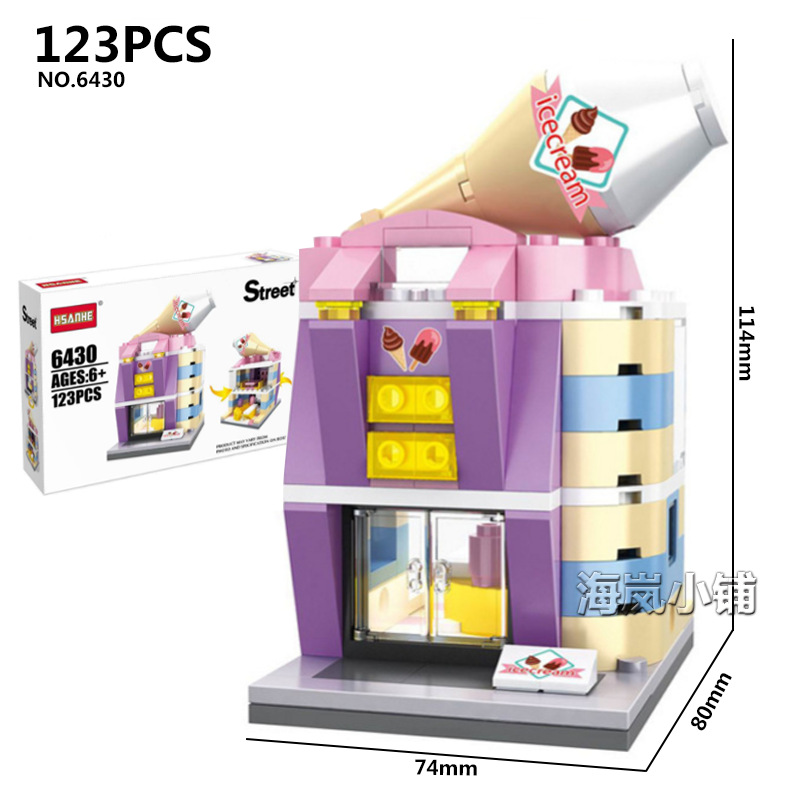恒三和街景系列6401-6434报社便利店咖啡店手机店拼装积木玩具