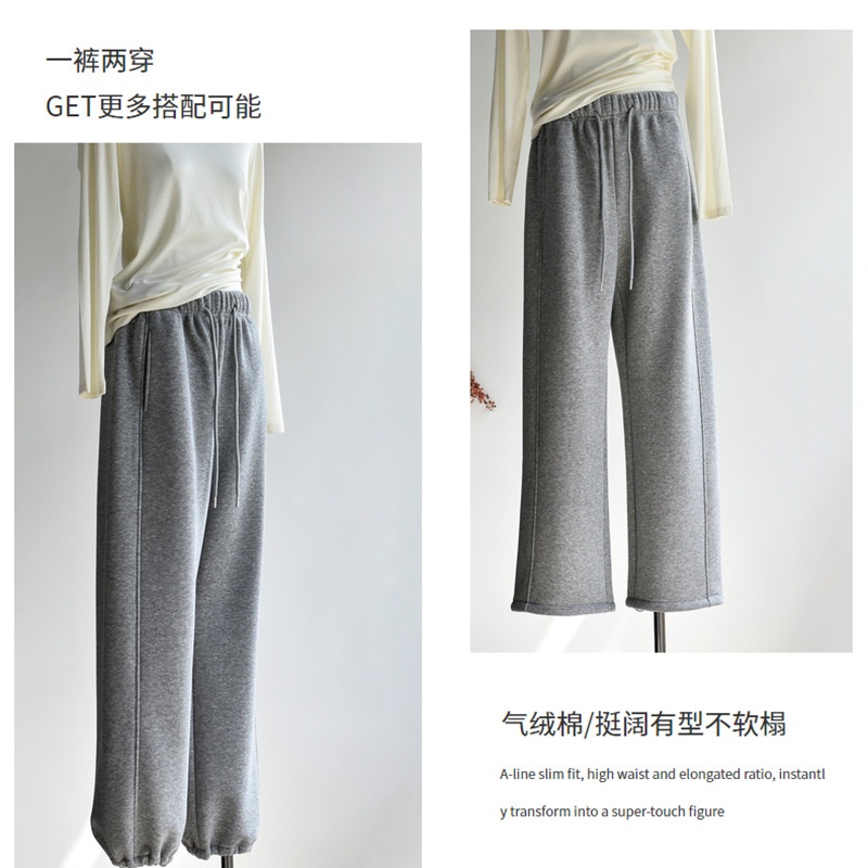 您的位置:他他商城  >   >  【特厚空气裤】25冬新款女装空气棉加厚仿羊绒加绒阔腿运动休闲裤