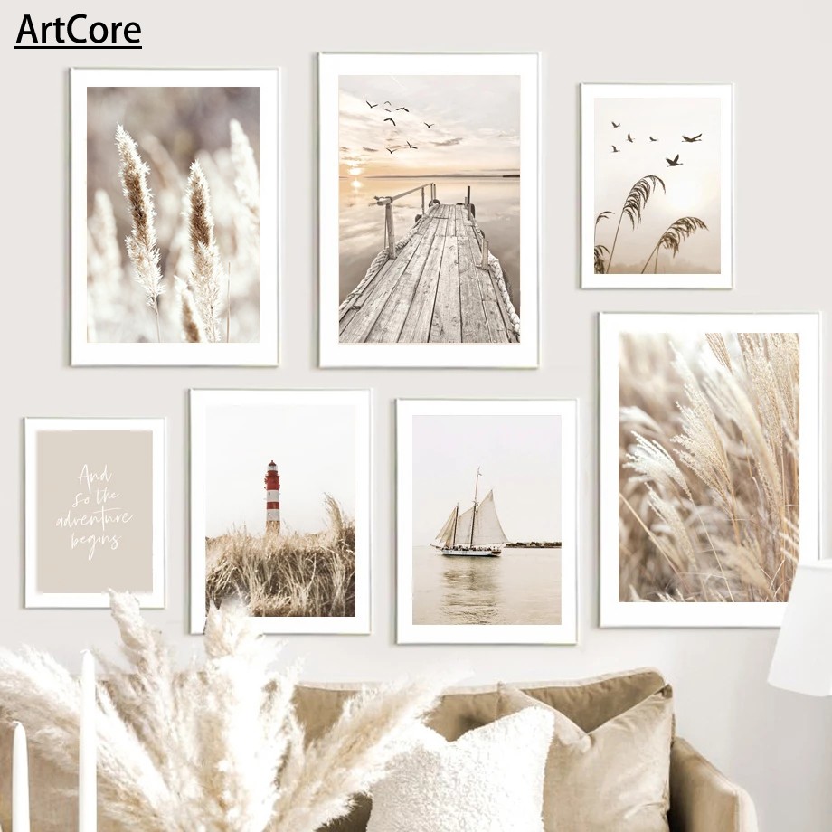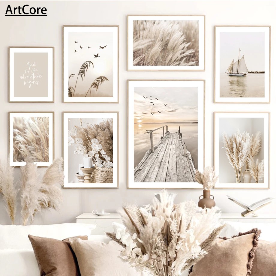 Beige Flower Grass Scenery Wall Art Pictures Canvas Painting - ArtCore