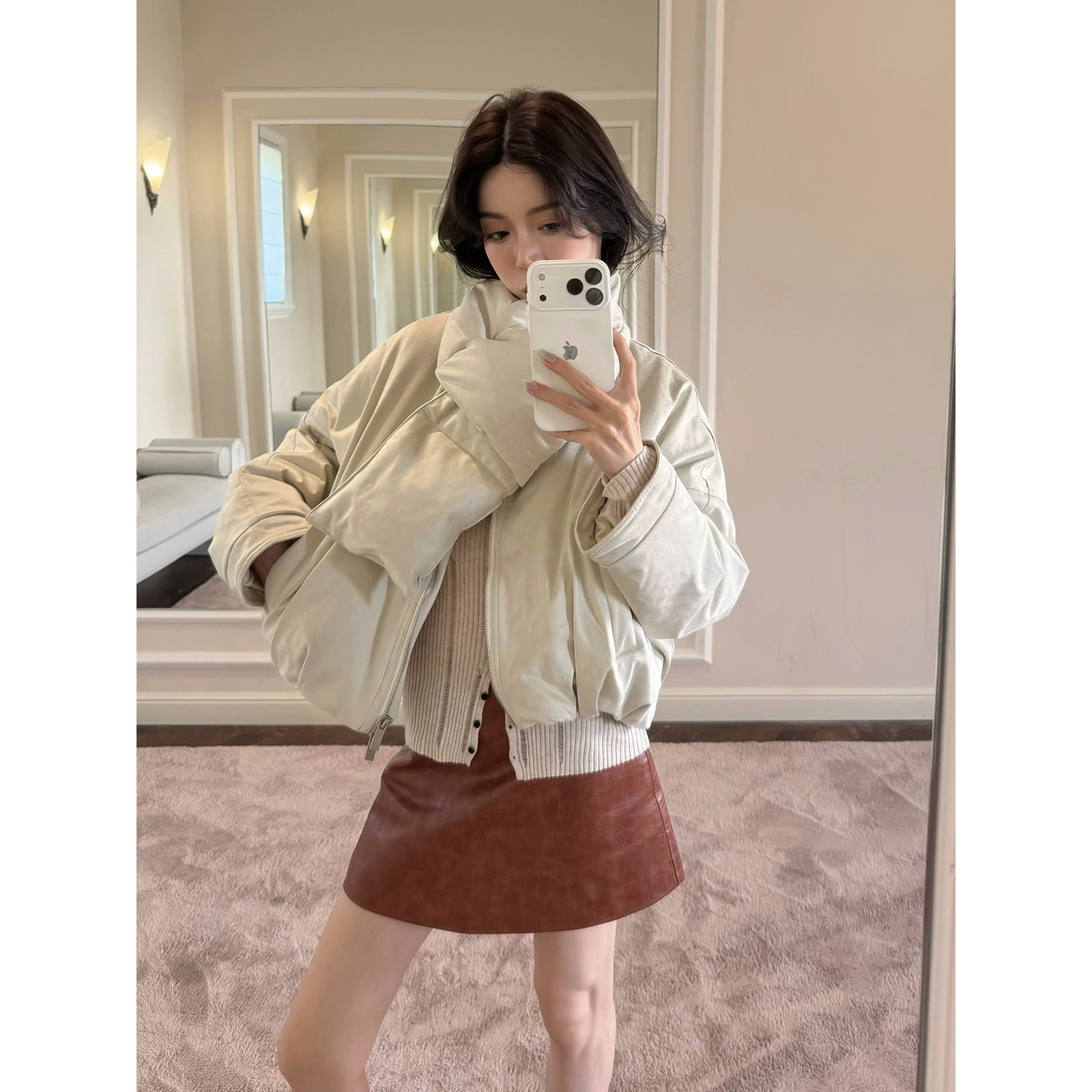 U粒-塞纳河畔韩系圆领鹿皮绒保暖羽绒服外套(配围脖)YS1-7013 - Solo17女装