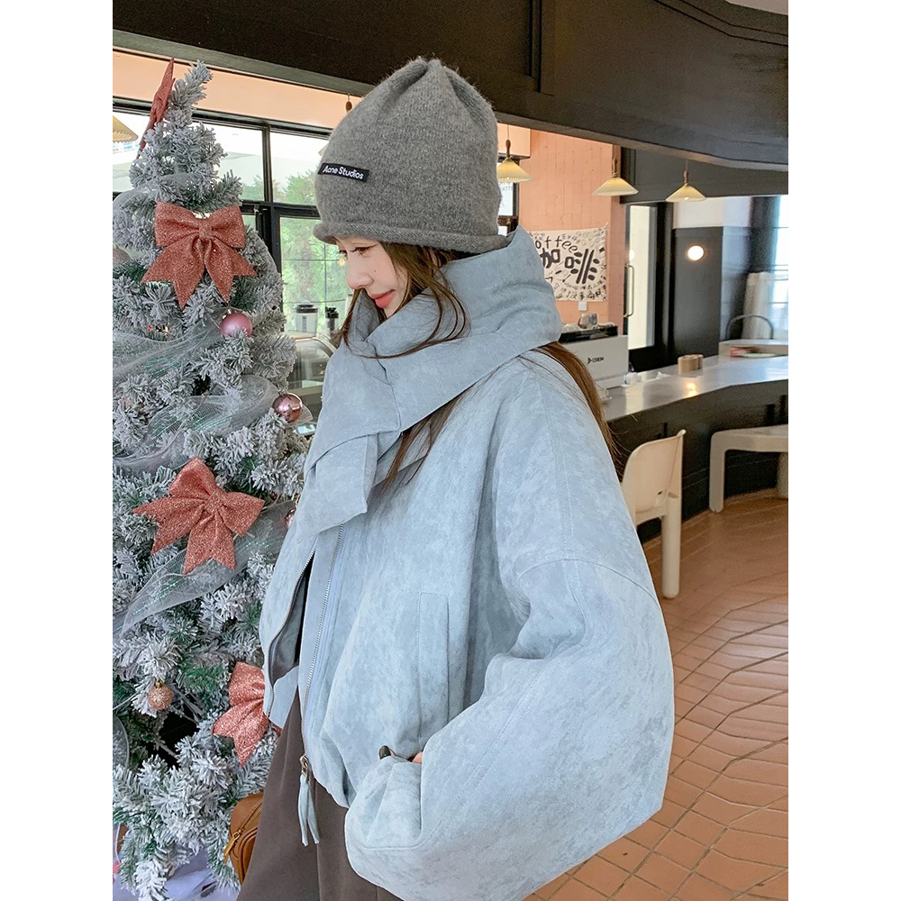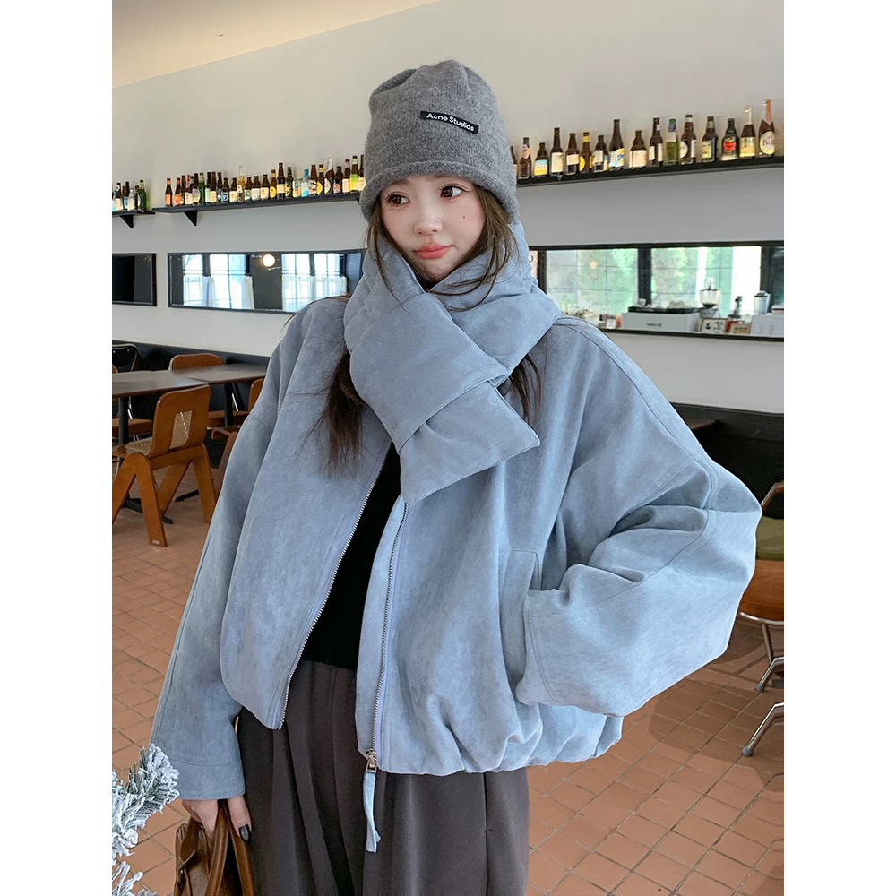 U粒-塞纳河畔韩系圆领鹿皮绒保暖羽绒服外套(配围脖)YS1-7013