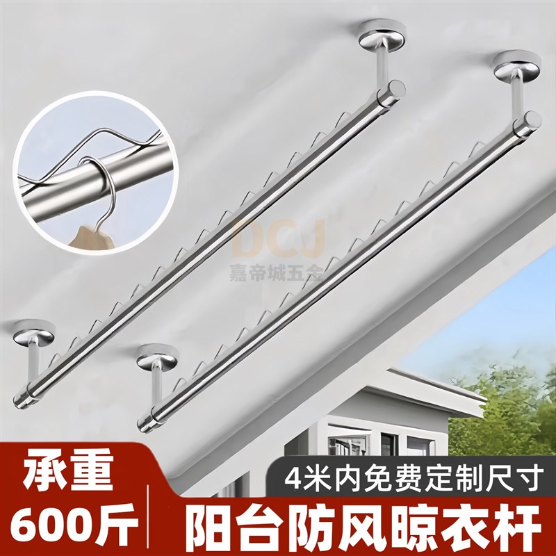 不锈钢圆管波浪形挂衣杆钢管阳台固定式衣杆防风晾晒挂杆晾衣杆