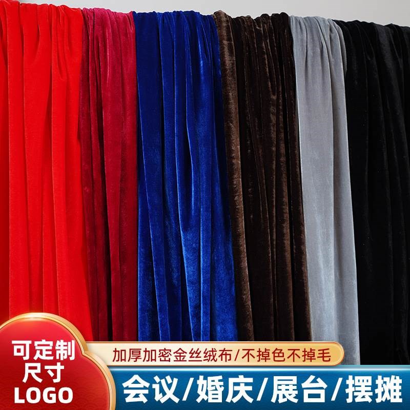 厂家加厚金c丝绒布料舞台幕布长方形会议桌布展会金丝绒布摆摊 - tb6931608254
