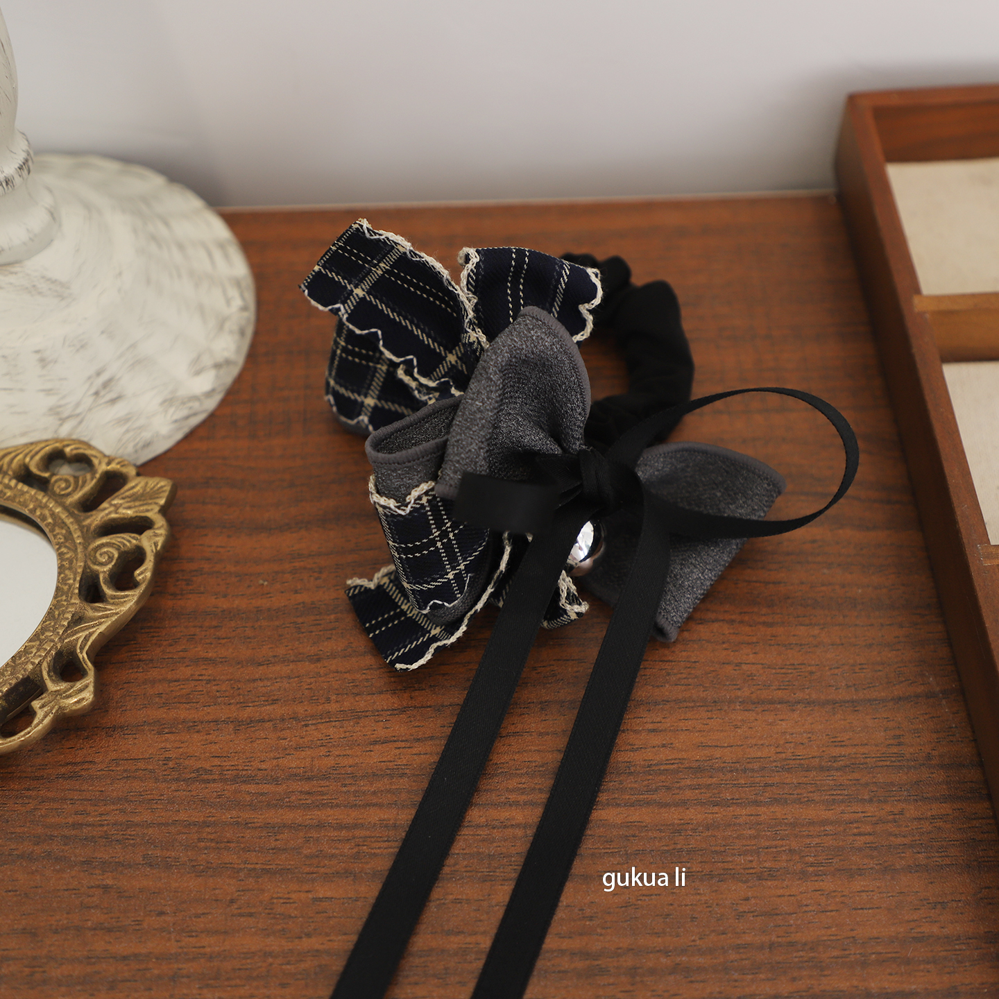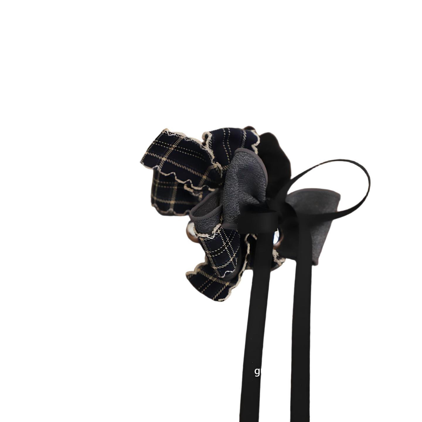 GUKUALI秋冬新款格纹蝴蝶结发夹盘发抓发圈头绳头饰高马尾发饰女 - GUKUA LI 小姐设计品牌