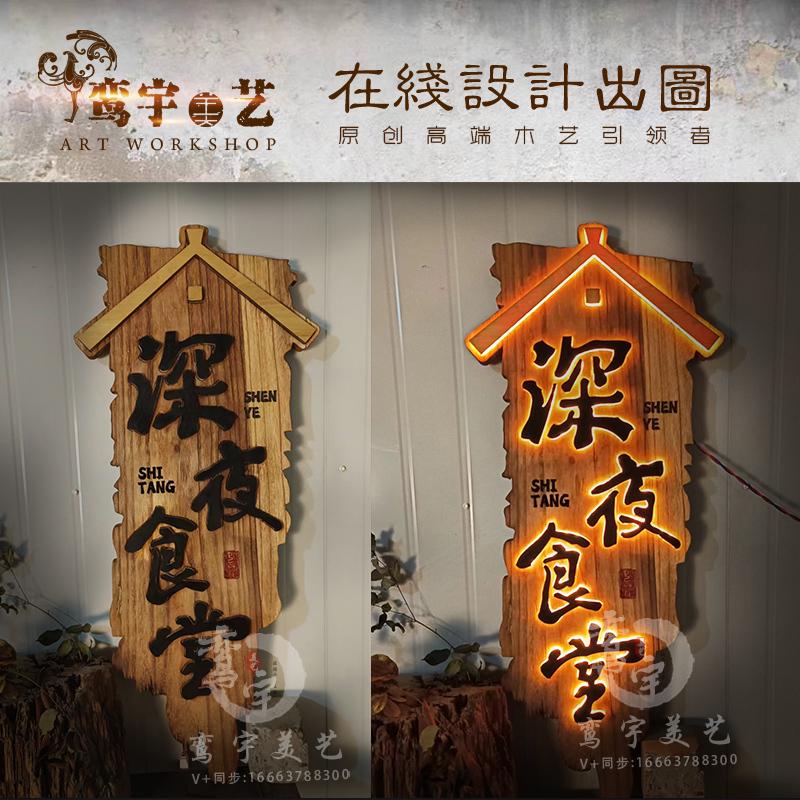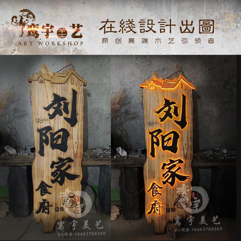 发光实木牌匾门头仿古装饰灯箱浮雕字定制竖版木制广告牌设计招牌 - 福秋轩商城