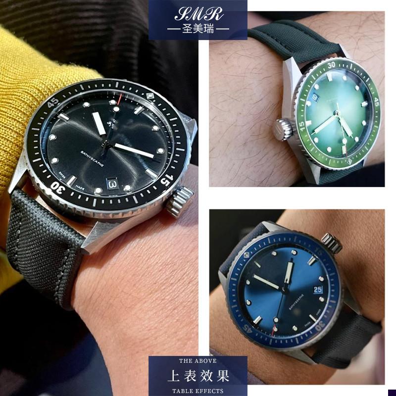 您的位置:他他商城  >   >  适配碳纤维尼龙手表带男士宝p珀五十噚寻5000/5015/5200极光绿皮