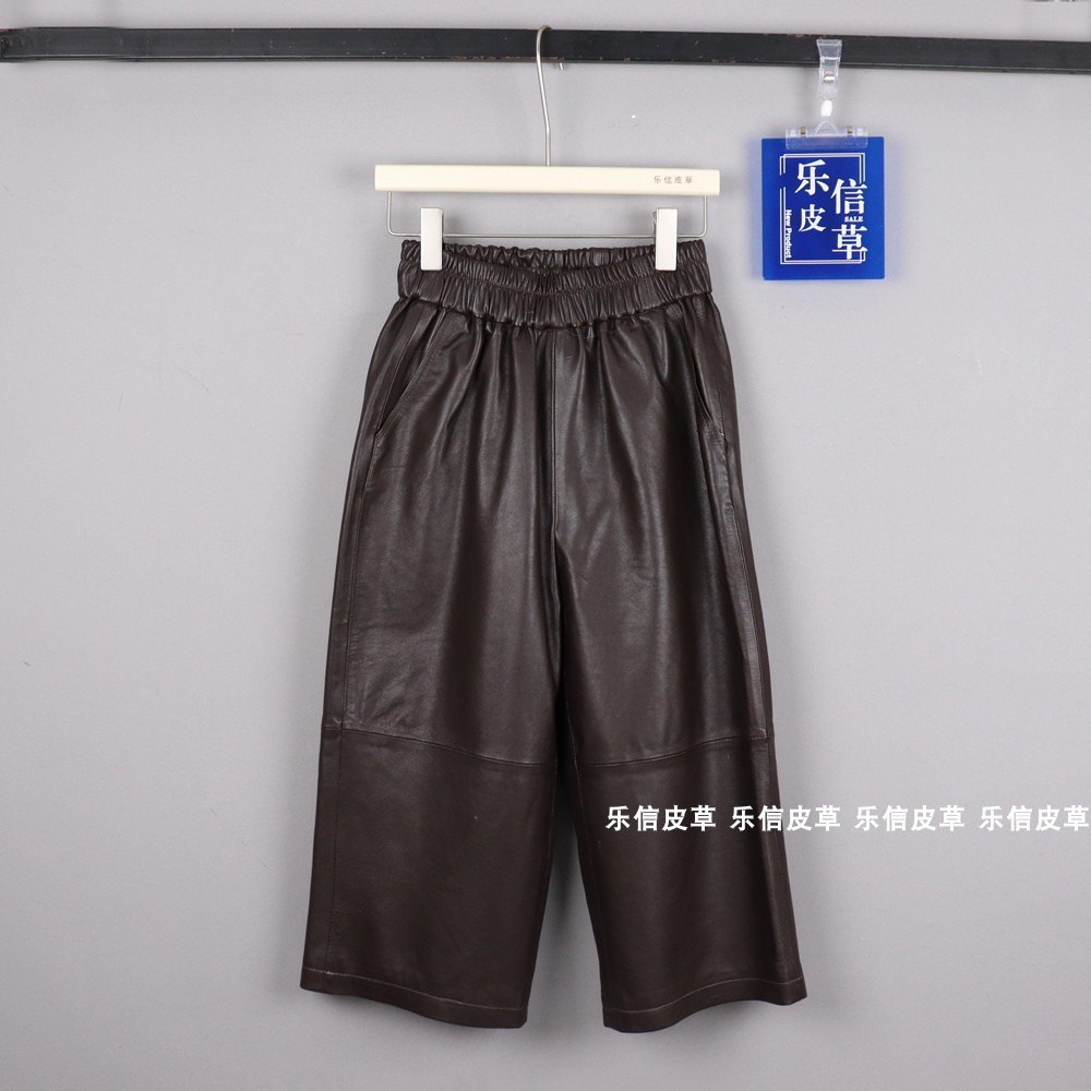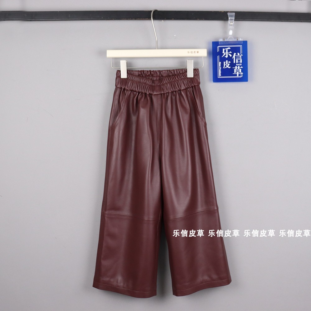 您的位置:他他商城  >   >  2024秋新款真皮皮裤女高腰阔腿裤绵羊皮直筒九分长裤阔腿裤松紧腰