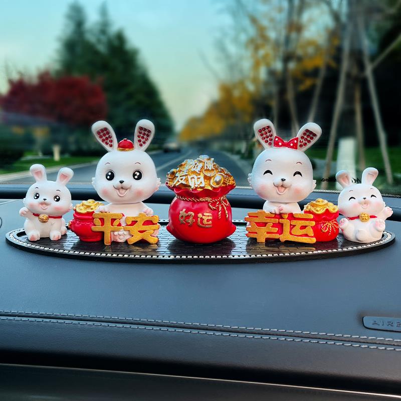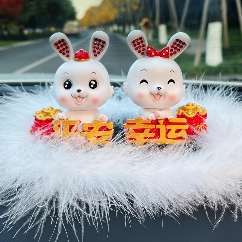 汽车中控台装饰车内饰品仪表台摇头摆件车载吉祥物网红卡通兔女神