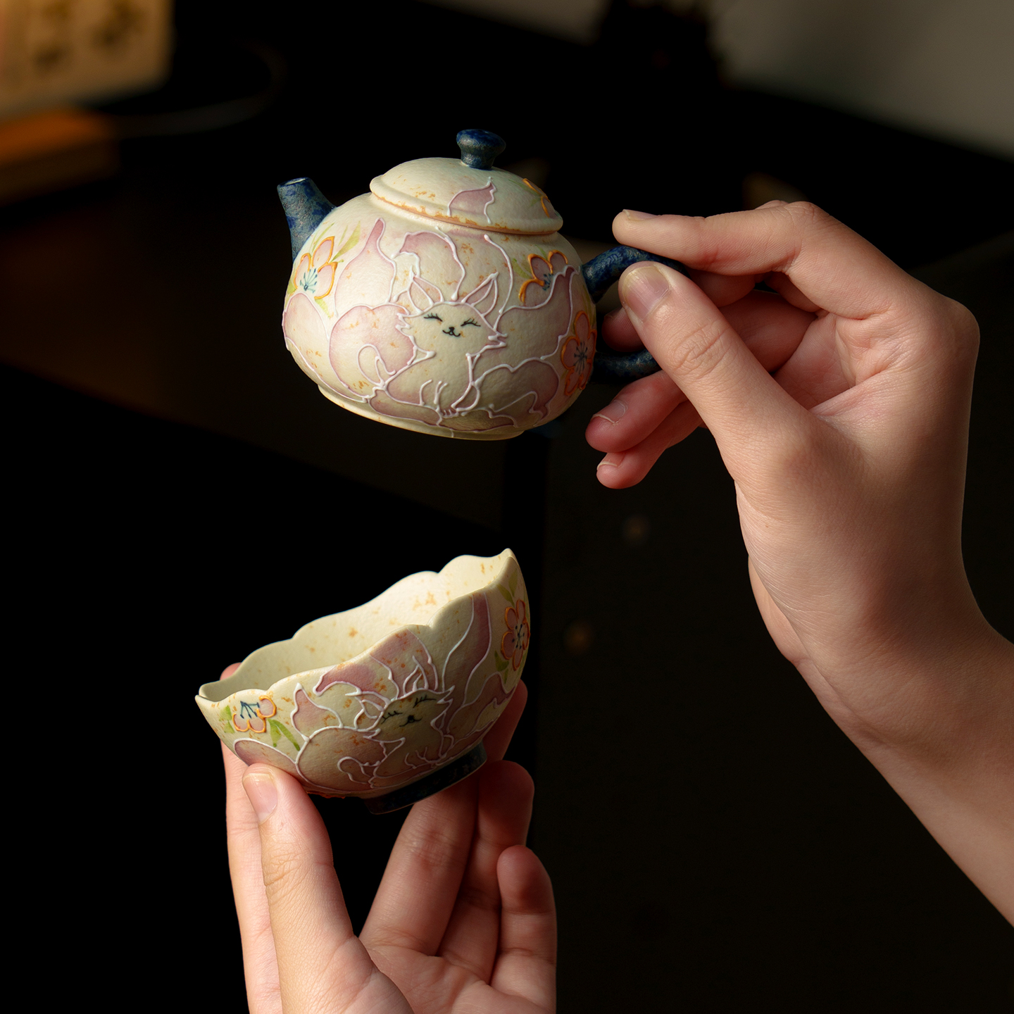 手绘九尾仙狐泡茶壶陶瓷套装家用新中式便携式旅行茶具礼盒装 - 舍己宜物旗舰店