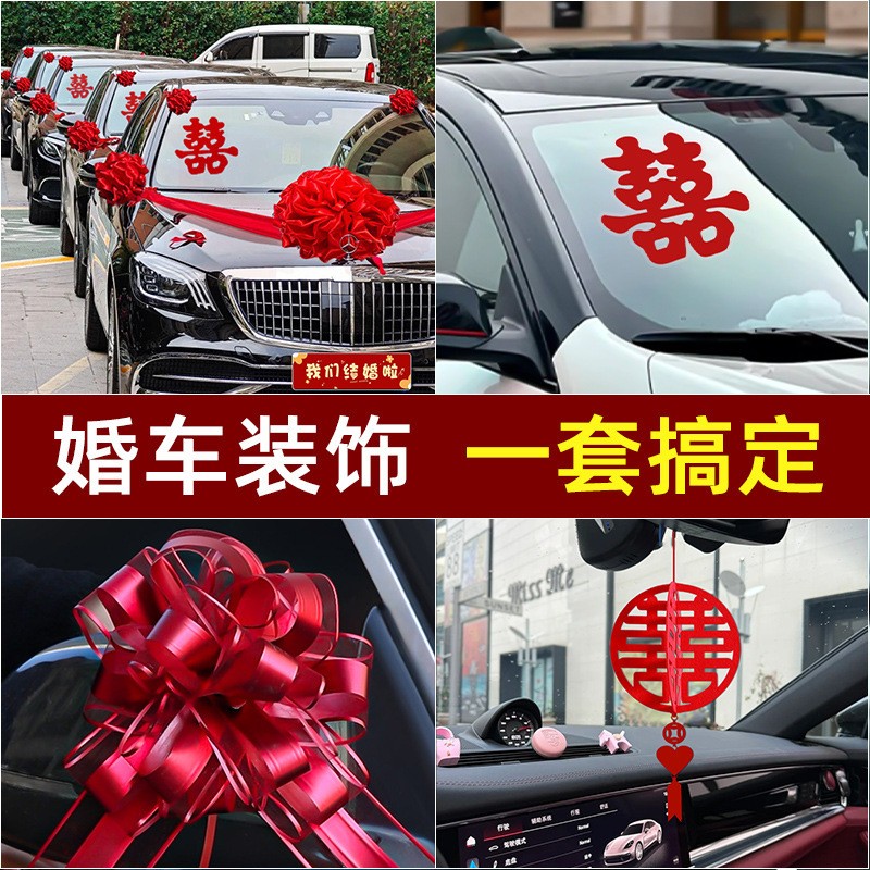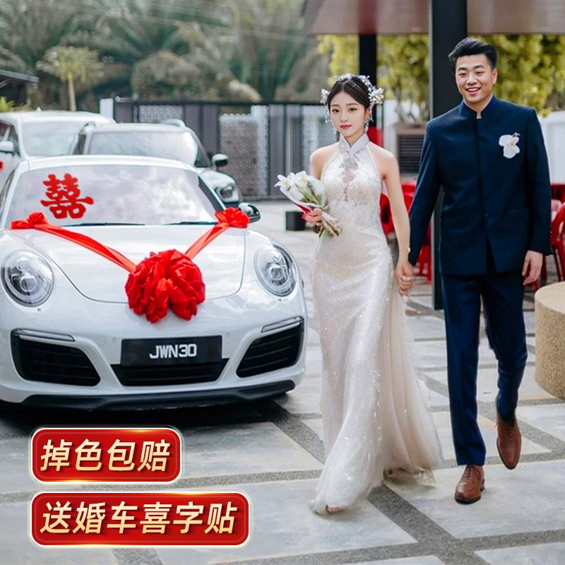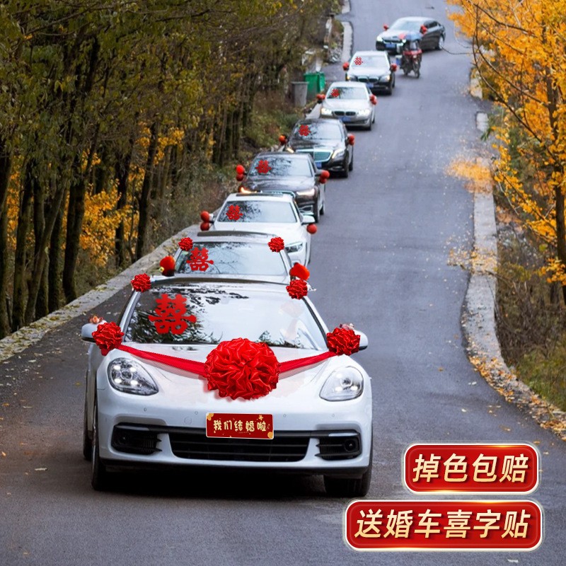 婚车大红花装饰车头球拉花接亲车全套结婚高级汽车车队头车花布置 - 茶楼送点心