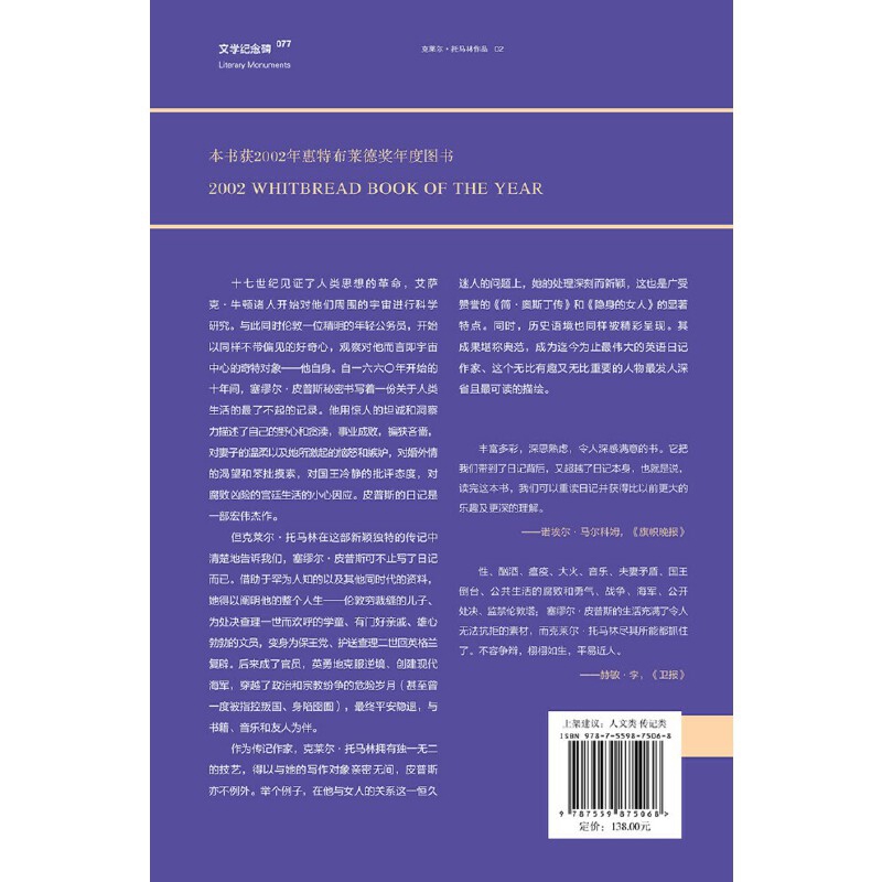 吾自绝伦-塞缪尔.皮普斯传-文学纪念碑(077)(英)克莱尔.托马林人物/传记其它广西师范大学出版社新华书店正版