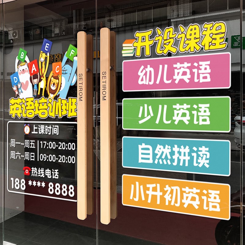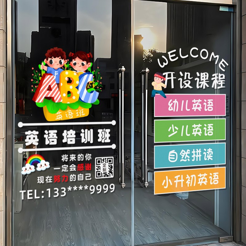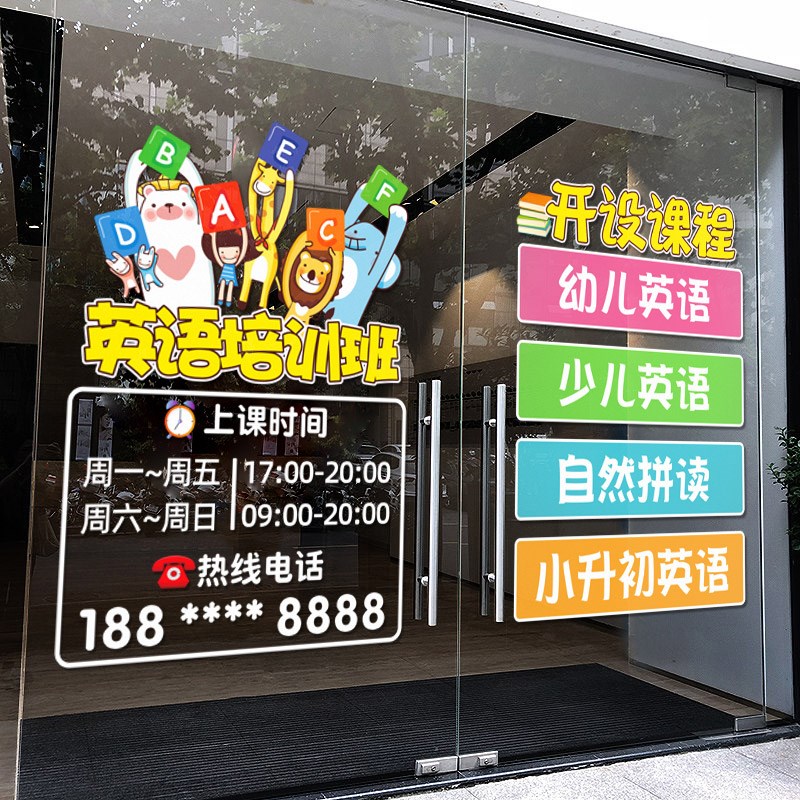 您的位置:他他商城  >   >  创意英语辅导班玻璃门贴纸幼儿英B语培训班学校贴画装饰布置静电