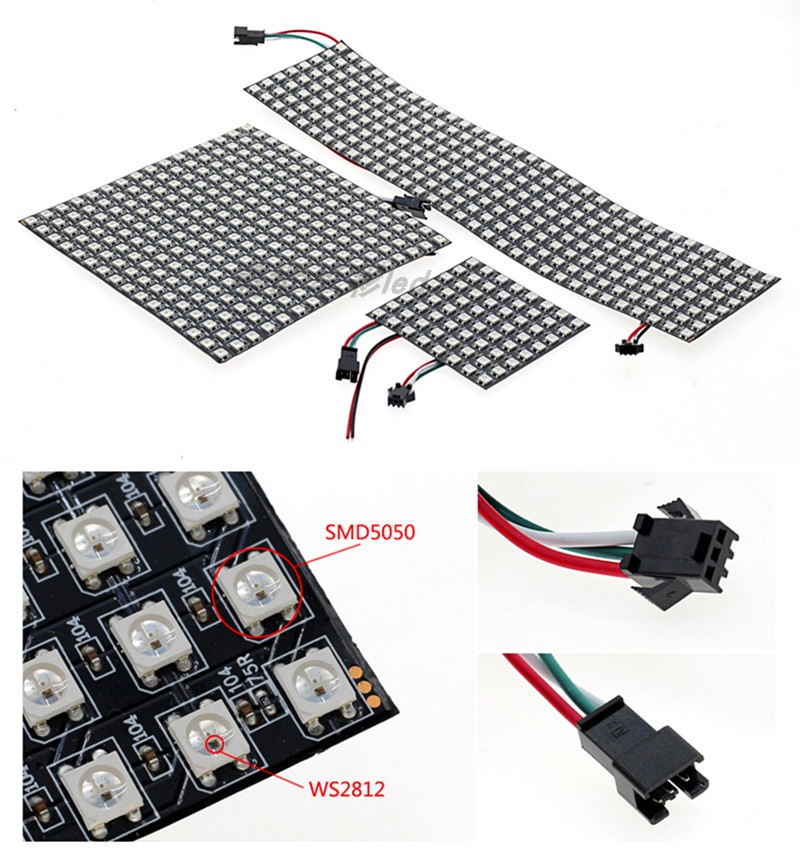 WS2812B全彩软像素屏8X8 8X32 16X16幻彩5V可arduino编程柔性点阵 - 盛世华彩LED灯饰