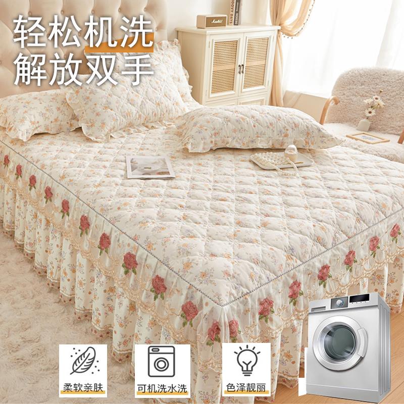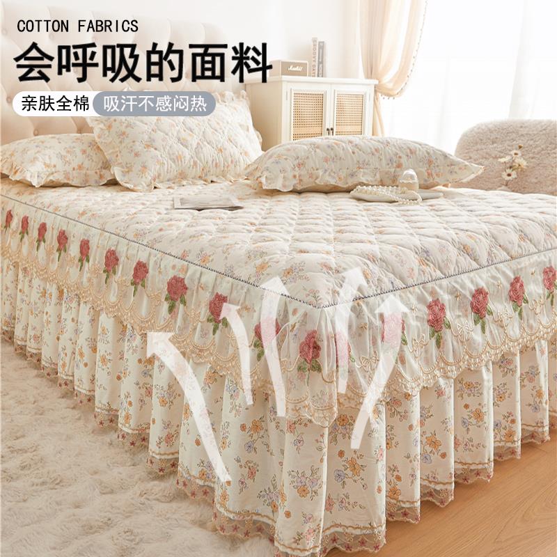 蕾丝床裙单件全棉纯棉床罩款床单四季通用床盖带裙边夹棉床围裙罩 - 百通百货官营店