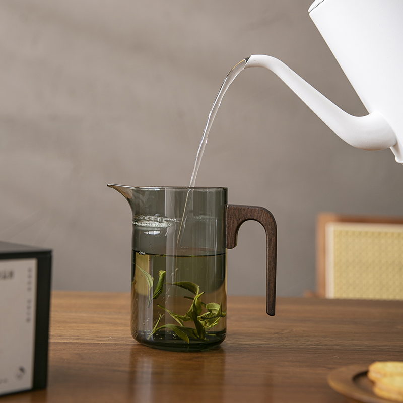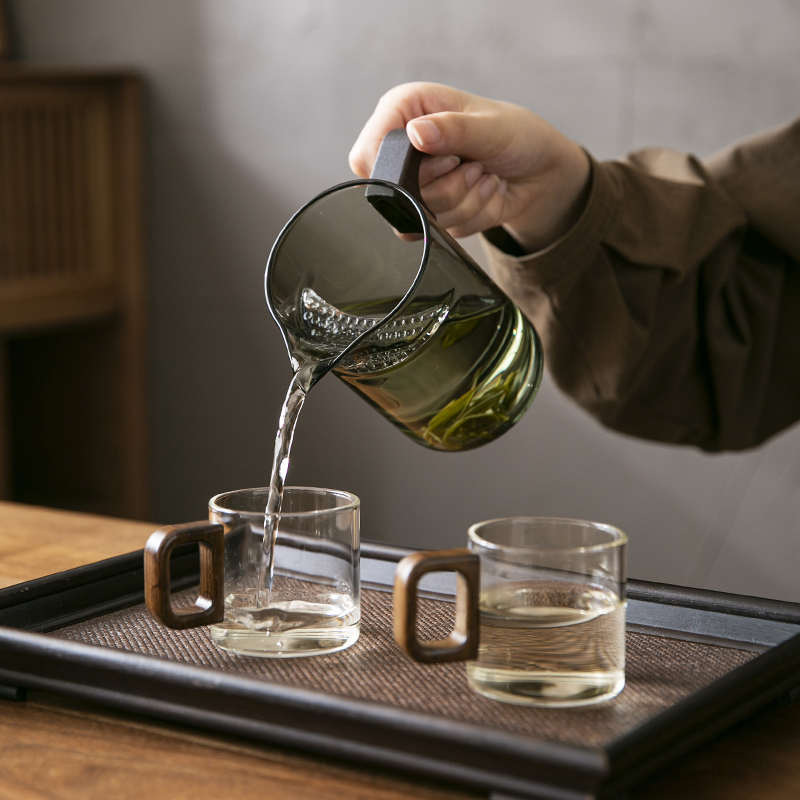 加厚耐热玻璃泡茶壶木把月牙公道杯茶滤网一体茶漏绿茶茶海分茶器 - 初简家具