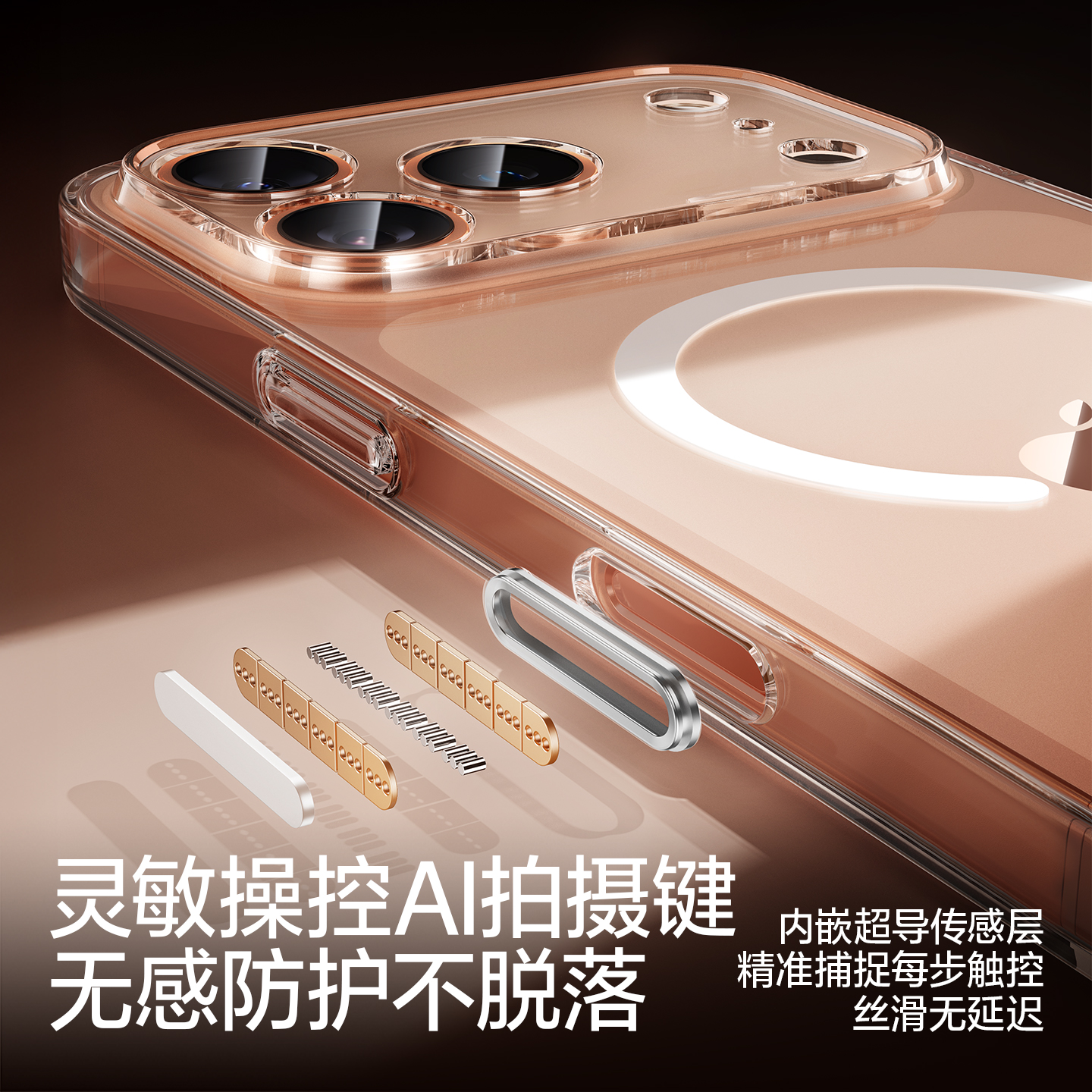 您的位置:他他商城  >   >  【自带Ai按键】闪魔适用iPhone17Pro手机壳苹果17ProMax新款17air磁吸Magsafe无线充超薄保护套16透明i硬壳pm