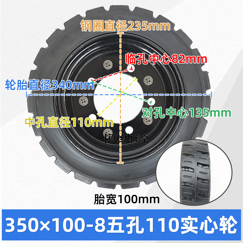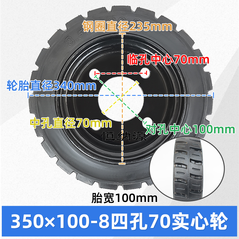 3.50×100-8 电动三轮车实心轮胎改装清扫叉车加宽载重橡胶免充气 - 恒纳源电动工程车配件大全
