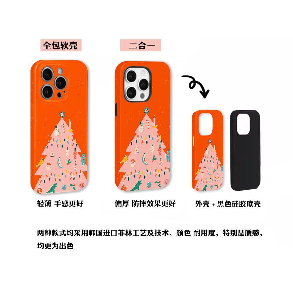 原创冬日暖橙粉色圣诞树适用苹果17PROMAX菲林手机壳iphone16plus软壳15卡通14可爱治愈欧美简约全包二合一 - 奔向姓胡