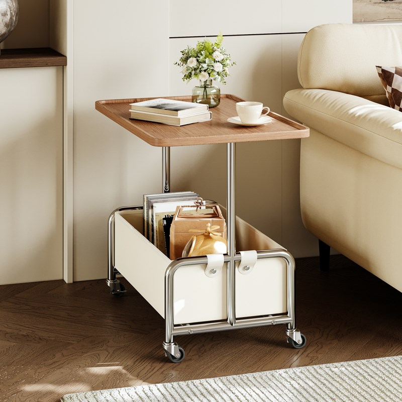 您的位置:他他商城  >   >  可移动沙发边几现代简约小推车茶几轻奢高级感中古床头边柜置物架