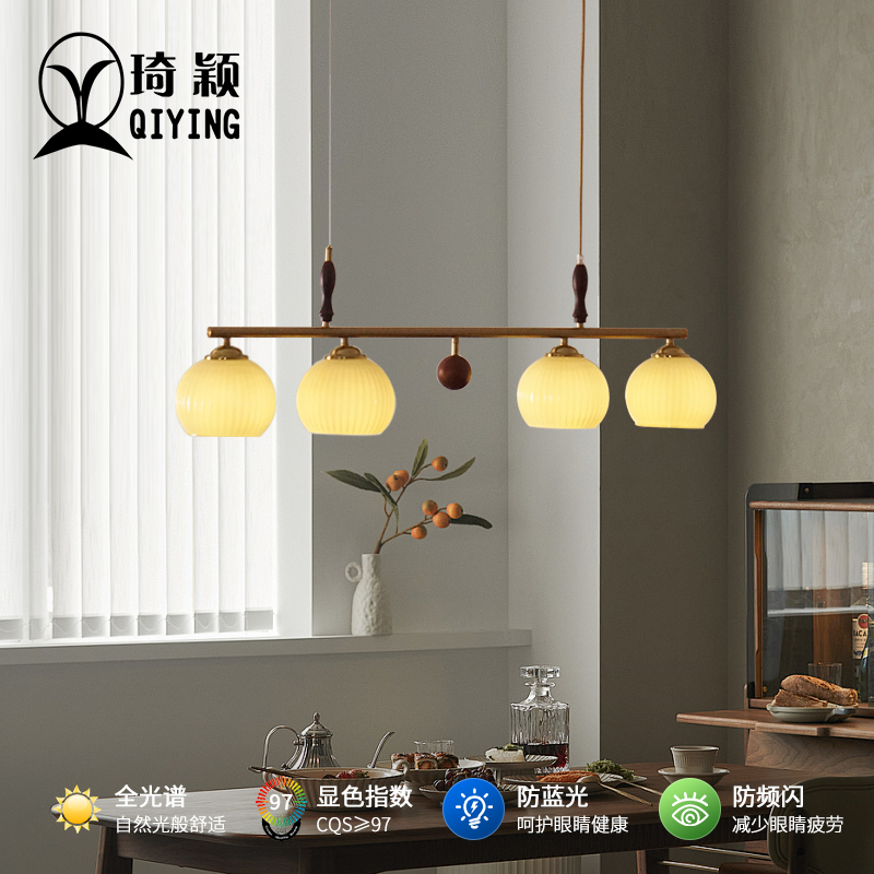 中古vintge柿子餐厅吊灯侘寂复古奶油风吧台长条实木中山新款灯 - 茁秋苗壮商城