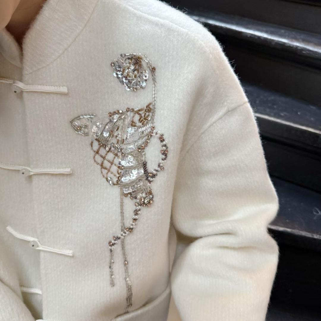 一壹-冬款上新莲蓬手工钉珠大衣大衣(含75羊毛)