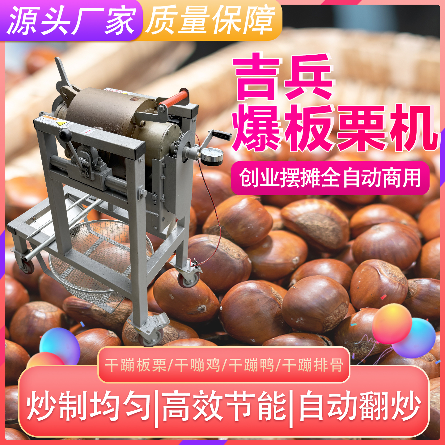 大炮嘣板栗机吉兵干嘣鸡全自动小型燃气爆鲜栗子25年最火摆摊项目 - 吉兵机械工厂店